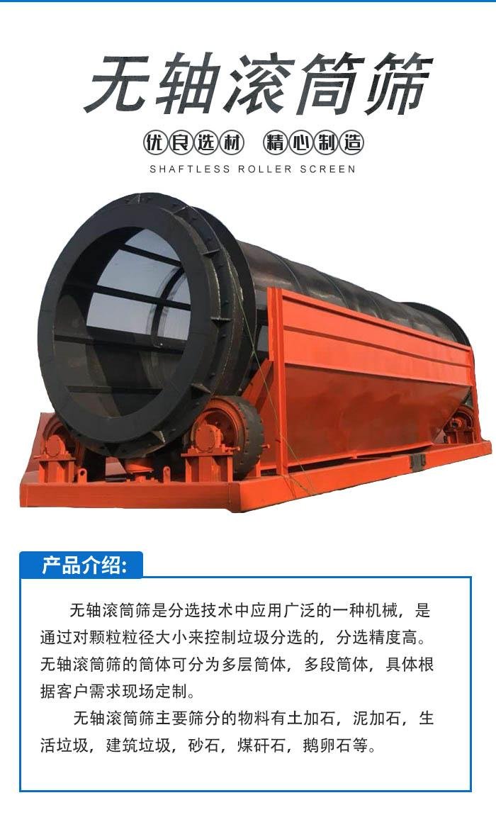 3、設(shè)備型號——不同型號的煤矸石無軸滾筒篩在設(shè)備外形規(guī)格等方面肯定是不同的,設(shè)備規(guī)格越大,對于原材料的使用量就越多,那么其價格定位就越高。