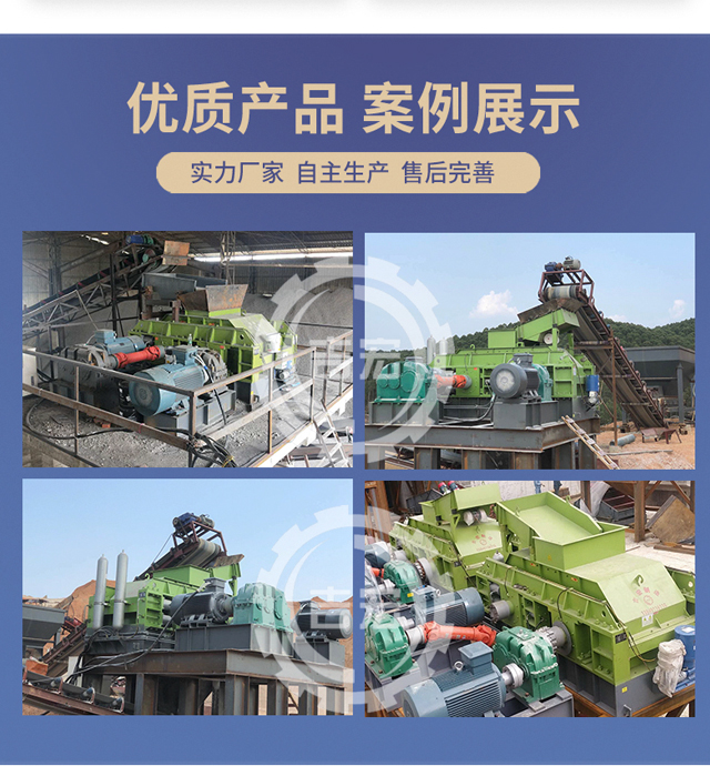 對輥式破碎機將破碎物料經給料口落入兩輥子之間,進行擠壓破碎,成品物料自然落下。遇有過硬或不可破碎物時,對輥式破碎機的輥子可憑液壓缸或彈簧的作用自動退讓,使輥子間隙增大,過硬或不可破碎物落下,從而保護機器不受損壞。相向轉動的兩輥子有一定的間隙,改變間隙,即可控制產品最大排料粒度。